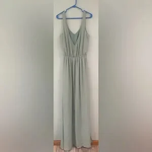 Show Me Your Mumu Kendall Chiffon Maxi Dress V-neck Size Large Silver Sage Blue