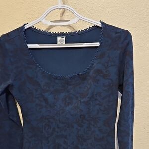 Magdalena Women’s Top Size S 4/6 Dark Blue Crochet Lace Trim Neckline Y2K Boho