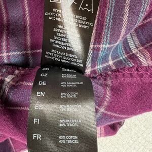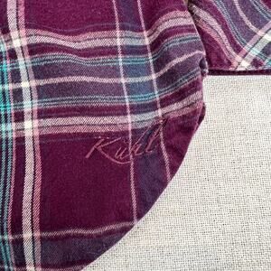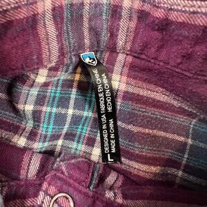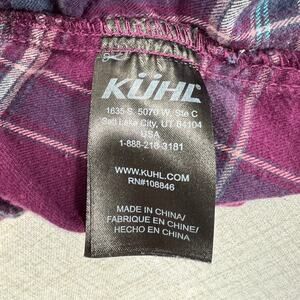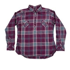 Kuhl Womens Flannel Shirt Long Sleeve 1/2 Snap Button Purple Teal Plaid Large