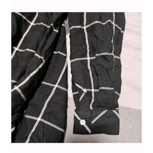 Elegant black layering blouse featuring a white grid design. Long sleeves with button details.Like new condition.For measurements please see pictures