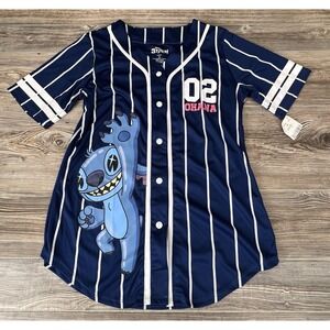 NWT Disney Lilo & Stitch OHANA Blue/White Stripe Baseball Jersey Junior's XL