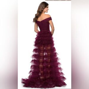 La Femme 28804 Off-Shoulder Tiered Ruffle A-Line Dress NWT size 6 Berry