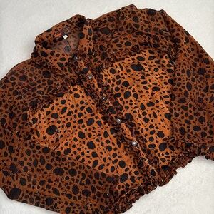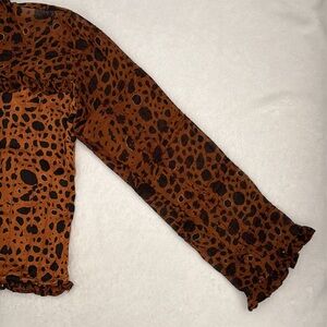 Nadya | Button Front Ruffle Bead Detail Animal Print Blouse Handmade in Bali (S)