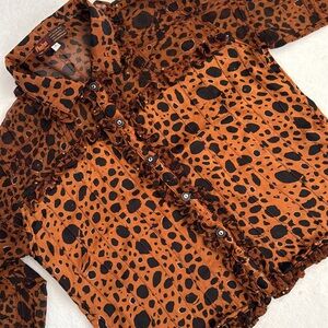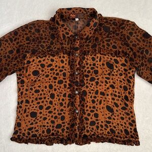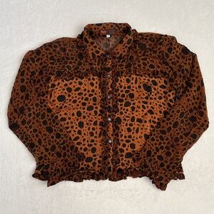 tags: Indonesia, unique, htf, hard to find, one of a kind, artsy, art to wear, museum, gala, event, artist, Osei-duro, Citron, Johnny Was, Free People, Anthropologie, Anthro, vtg, vntg, vintage, international, 2, S, small, sml, women, womens, women's, statement piece, tops, ruffles, beaded, beading, cheetah, leopard