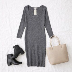 H&M Charcoal Ribbed Knit Midi Dress Size 2XL NWT | Minimalist Normcore Scandi