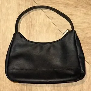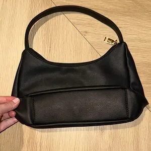 Black mini shoulder bag with a sleek, minimalist design and gold-tone hardware. Compact and perfect for everyday or evening wear.