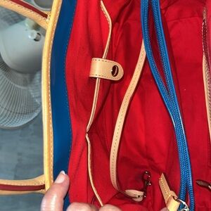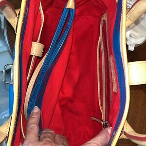 Dooney & Bourke Satchel Royal blue coated canvas/ tan leather trim Like New
