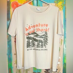 Embrace the outdoors with this cream Adventure graphic tee—perfect for everyday casual wear.