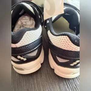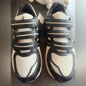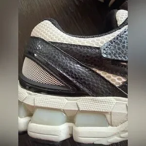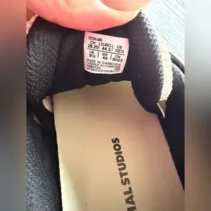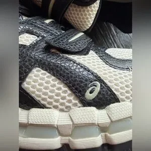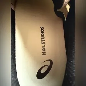 The product is a Size 10.5 ASICS Gel Kayano 20 in Bone, a collaboration between HAL STUDIOS and ASICS. This athletic sneaker features a mesh upper material in a sleek black color, making it suitable for men who are fans of both fashion and functionality