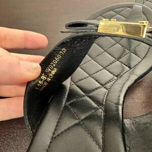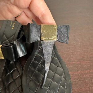 Cole Haan Tali Bow Wedge Sandals Size 7 Black Leather Gold
