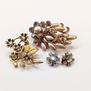 Vintage 2 Brooch Lot Plus Bonus Earrings