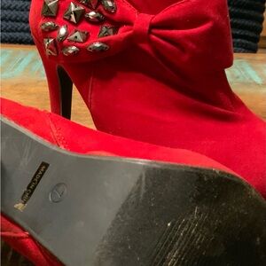 Step out in style with these stunning red heels, featuring a chic bow and metallic embellishments. Perfect for any occasion.