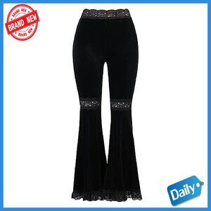 Gothic Velvet Flared Pants with Lace Patchwork, Steampunk Design