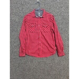 Cactus Menswear Medium Long Sleeve Black Pearl Snap Button Down Red Black Plaid