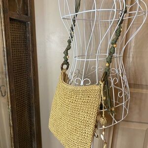Sun 'N' Sand crochet or woven natural fiber crossbody bag. featuring beachy and resort styles with natural materials