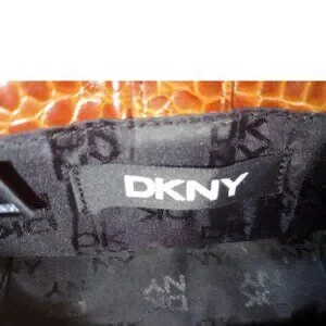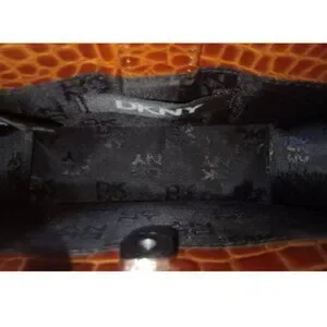 Beautiful vintage aged DKNY brown crocodile-embossed leather handbag. Features a structured
