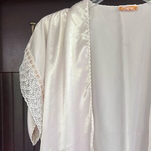 VINTAGE VAL MODE 90s Satin Lace Trim Kimono Layer Fairy Coquette Bridal Size S