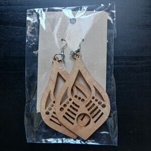 Laser cut wood dangle earrings 3.5" L x 3" W fish hook lightweight teardrop boho