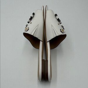 Step into elegance with these floral embellished white slide sandals. Perfect for any occasion, these sandals offer both style and comfort.