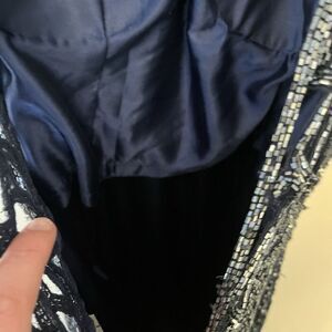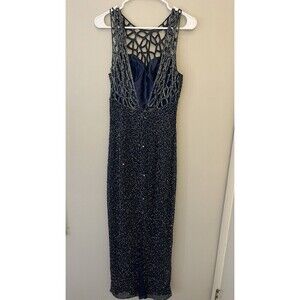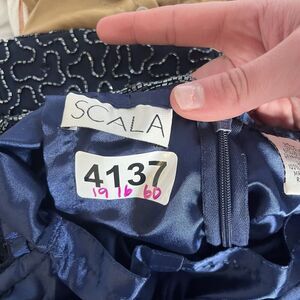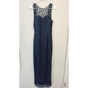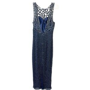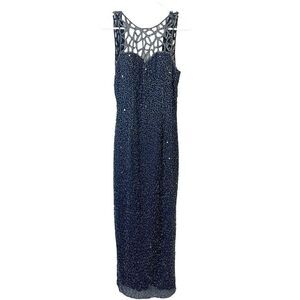 Scala Navy Blue Sleeveless Beaded Gown Maxi Long L Silk Women’s Formal Wedding