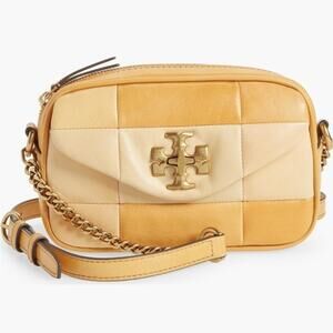 Tory Burch Kira Mini Leather Patchwork Camera Bag GOLDEN STRAW MIX