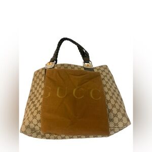 Gucci Beige GG Canvas Bamboo Libeccio Tote Bag