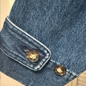 Stylish blue denim trench coat with button details. Perfect for casual outings.