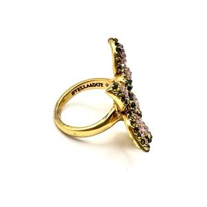 Rare Stella & Dot Pink & Green Rhinestone Flower Adjustable Open Gold-Tone Ring