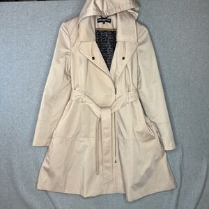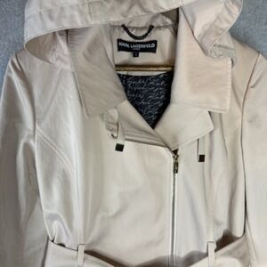Karl Lagerfeld Paris Women's Trench Coat S Beige Belted Removable Hood