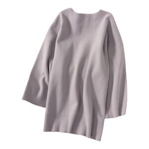 This is a V-neck sweater with dropped shoulders and ribbed trim. It's knit with Wonder Yarn — the lightweight yarn that lives up to its name. This peachy-soft yarn offers the all-season warmth of wool, without the wool. It’s made with LENZING™ ECOVERO™ Viscose — responsibly sourced wood-based fibres produced through a process that reduces impact on forests, biodiversity and water supply. This version is constructed using a Jersey stitch for a soft drape and a smooth, flat feel.