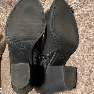 Chic black ankle booties with side zipper. Versatile and stylish for any outfit.