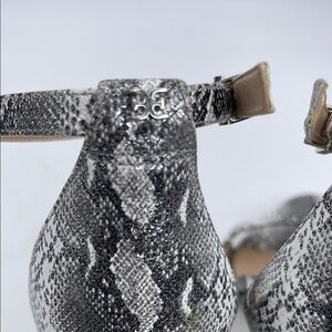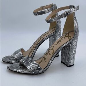 Sam Edelman Yaro Heel Silver Snake Print Leather Ankle Strap Open Toe Sandal 8.5