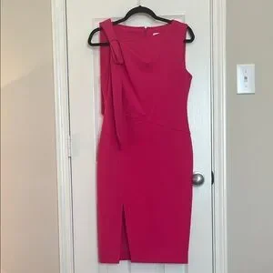 Stunning Pink Form Fitting Dress with Side Shoulder Bow Detail!