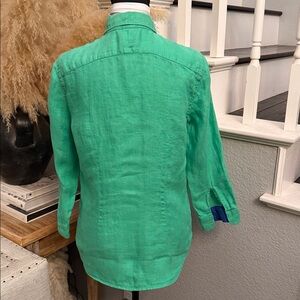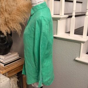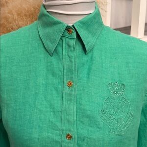 Lauren Ralph Lauren Green 100% Linen Button Down Shirt 3/4 Sleeve Size Small