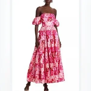 Aqua Strapless Floral Off the Shoulder Maxi Dress in Pink and Red