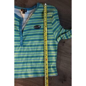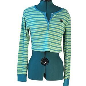 dELiA*s Striped Waffle Knit Henley Crop Top Y2K Vintage Small Long Sleeve