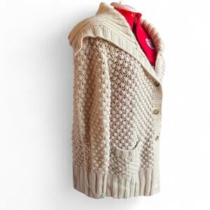 Talbots Wool & Alpaca Blend Oversized Cream Knit Button Up Cardigan Size L