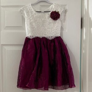 Elegant dress with white lace top and deep fushia skirt. Ideal for special events. #party #church #holiday #beautiful #lovely #sweet #doll #pretty #winter #fall #spring #formal #wedding
