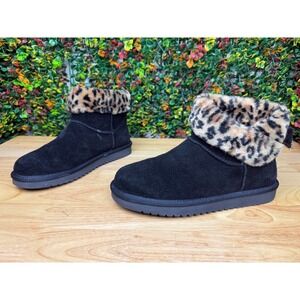 UGG Koolaburra Aribel Short Folding Boots Leopard Animal Print Black Womens 10