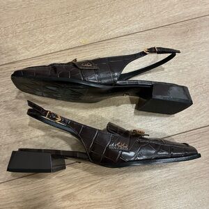 Schutz Women’s Arizona Brown Slingback Leather Embossed Block Pump Size 6.5