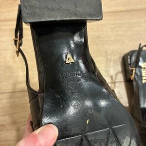 Schutz Women’s Arizona Brown Slingback Leather Embossed Block Pump Size 6.5. Good used condition. Light wear. Some light sticky residue on bottom from store price sticker.
