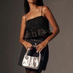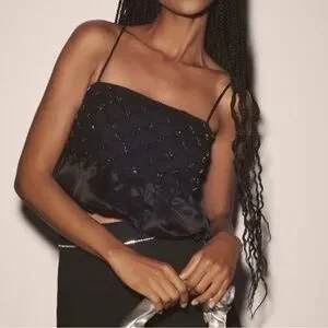 NWT Anthropologie Black Beaded Satin Crop Top Medium