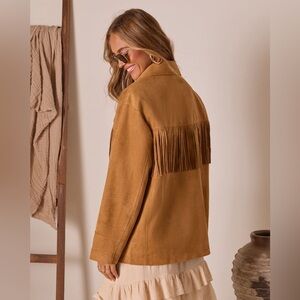 VICI Even Ember Suede Fringe Jacket in Camel, Size Small