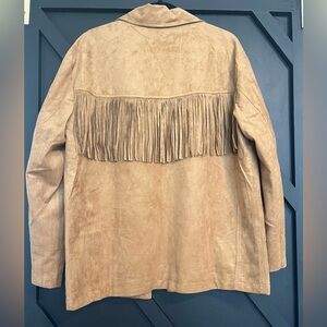 VICI Even Ember Suede Fringe Jacket in Camel, Size Small 🐪