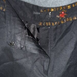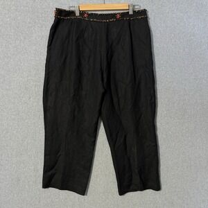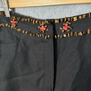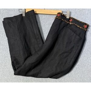 Larry Levine Linen blend Black Cropped Pants Beaded Embellished Waist 12