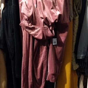 Cozy dusty rose pullover with hood two piece set. Ideal for relaxed outings.
