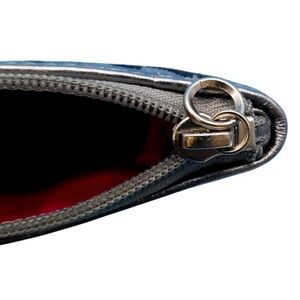 Stylish Coach wristlet set with bold pattern. Ideal for evenings or everyday use. Features iconic Coach design.