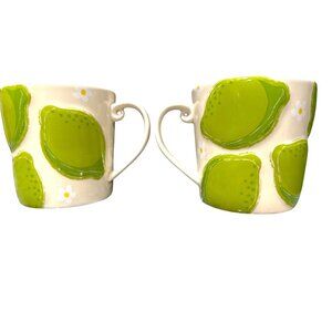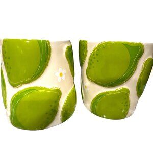 Starbucks Vintage 2006 Green Pear Daisy Ceramic Cup Set Pair Cottage Kitchen Bar