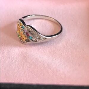 Silver and Gold 'Mom' Ring with Multicolor Accents