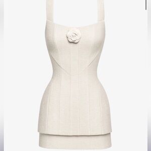 Step out in style with this chic cream mini dress, featuring a charming floral accent. Perfect for any occasion, this dress offers a flattering fit and timeless elegance.